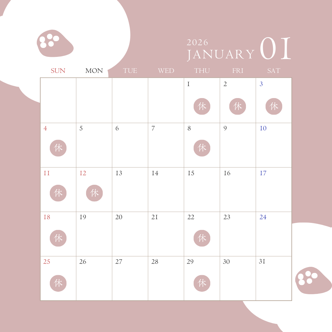 1月1日(木)~4日(日)は冬期休暇をいただきます。